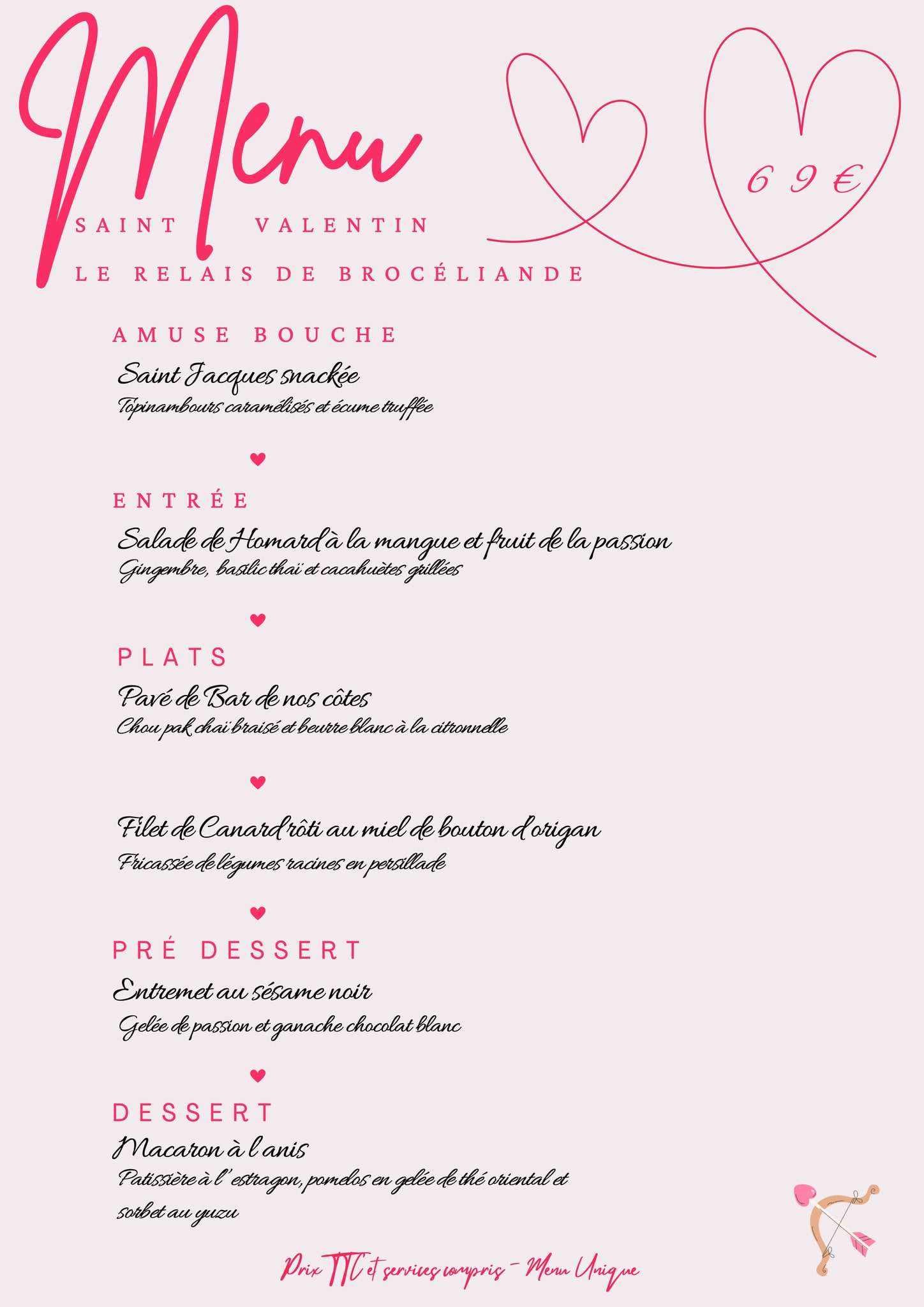 Offre valable le 14 février 2026, dans la limite des disponibilités. Menu St Valentin hors boisson. Offre non cumulables avec d’autres promotions en cours.